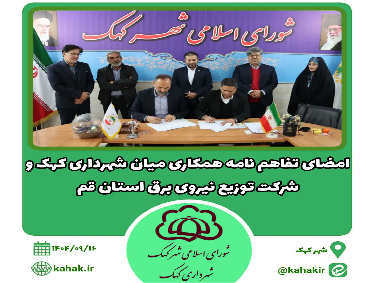 *امضای تفاهم نامه همکاری میان شهرداری کهک و شرکت توزیع نیروی برق استان قم*